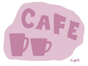 大人可愛いHP制作に使えるくすんだピンクのマグカップとCAFEの手書き文字