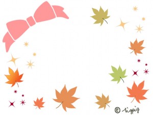 フラットデザインにも合う大人可愛い紅葉とリボンのイラストのフリー素材:640×480pix