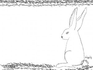 モノクロの兎(うさぎ)の無料イラスト。フレーム素材。フリー素材(480×640pix)ダウンロード