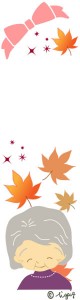 秋のバナー制作のフリー素材:大人可愛いリボンと紅葉とおばあちゃんのイラスト;160×600pix
