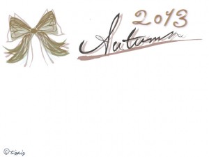 秋のフリー素材:大人可愛いリボンと2013Autumnの手描き文字のイラスト;640×480pix