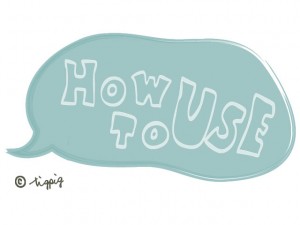 大人可愛いHP制作のフリー素材:手書き文字のHOW TO USE(使い方)とパステルブルーのフキダシ;640×480pix