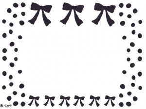 ブラウンブラックのリボンとドット(水玉)のフレームのフリー素材(640×480pix)
