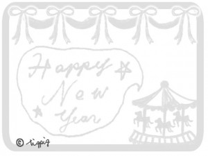ガーリーなリボンとシンプルなメリーゴーランドのシルエットのデザインなので、雑貨、HPやブログの新年のデコメにもどうぞ。