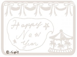 ガーリーなリボンとシンプルなメリーゴーランドのシルエットのデザインなので、雑貨、HPやブログの新年のデコメにもどうぞ。