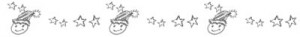落書きみたいなシンプルな顔とパーティハットと星のイラストの飾り罫:400×50pix