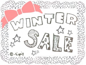 大人かわいい「WINTER SALE」の手書き文字とピンクのりぼんとモノトーンのレース:640×480pix