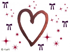 大人可愛い水彩のハートのイラストとリボンとキラキラ:640×480pix ダウンロード