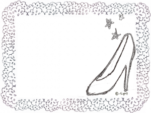 大人可愛い水彩のハイヒールのイラストとレースのモノトーンのフレーム:640×480pix