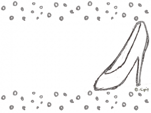 にじんだ水彩風のラフで大人可愛いハイヒールの手描きイラストです。
