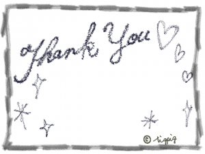 大人可愛いThank youの手描き文字とハートとキラキラと鉛筆風枠のフレーム:640×480pix