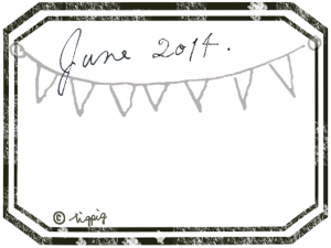 June 2014の手描き文字と旗とラベル風フレーム:640×480pix