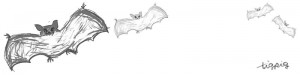 ガーリーなモノクロのこうもりのイラスト(無料)。フリー素材(800×200pix)ダウンロード