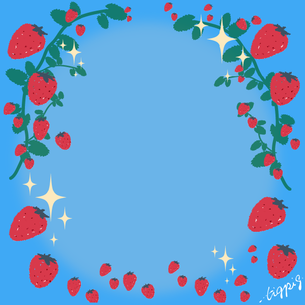 【春のフレーム】いちごのイラストのフレーム素材(正方形)-水色の背景