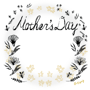 mother’s dayの手書き文字と北欧風のモノトーンの小花の円形ラベル風バナーの無料素材(透過の背景)