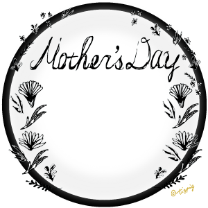 mother’s dayの手書き文字と北欧風のモノトーンの小花の円形ラベル風バナーの無料素材(透過の背景)