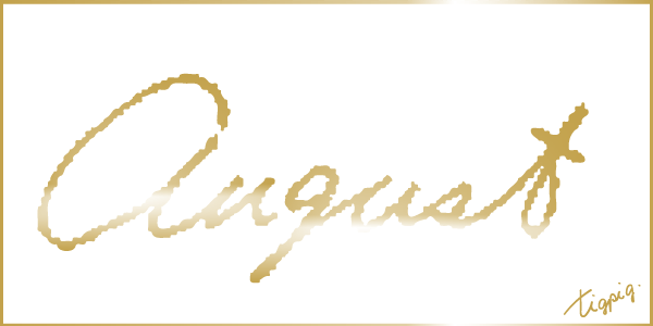 【8月】Augustの手書き文字(ゴールド)と囲み罫の素材600×50pix ダウンロード