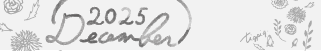 【12月】December2025の手書き文字とヨーロッパ風の花と葉っぱのイラストバナー素材320×50pix