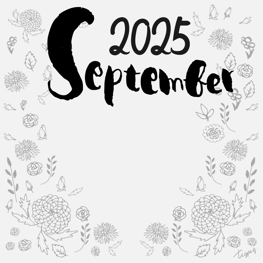 【9月】September2025の手書き文字とヨーロッパ風の花と葉っぱのイラストバナー素材1080×1080pix