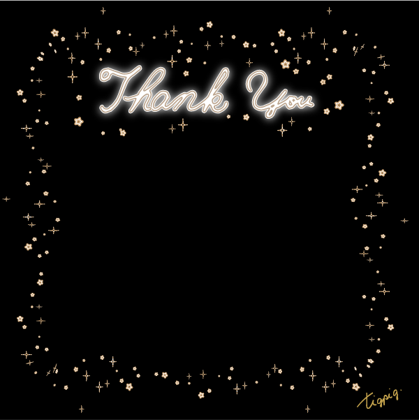 [バナー素材]Thank youの手書き文字とあしらい(プレゼントや植物)の背景素材 600×600pix (黒Ver.)