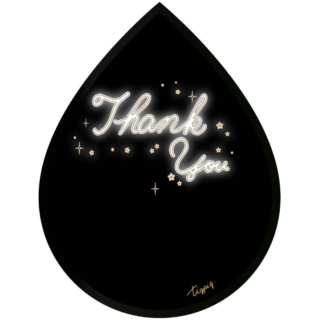 [Instagramサイズ]Thank youの手書き文字とあしらいのバナー素材 (しずく型)1080×1080pix (黒Ver.)