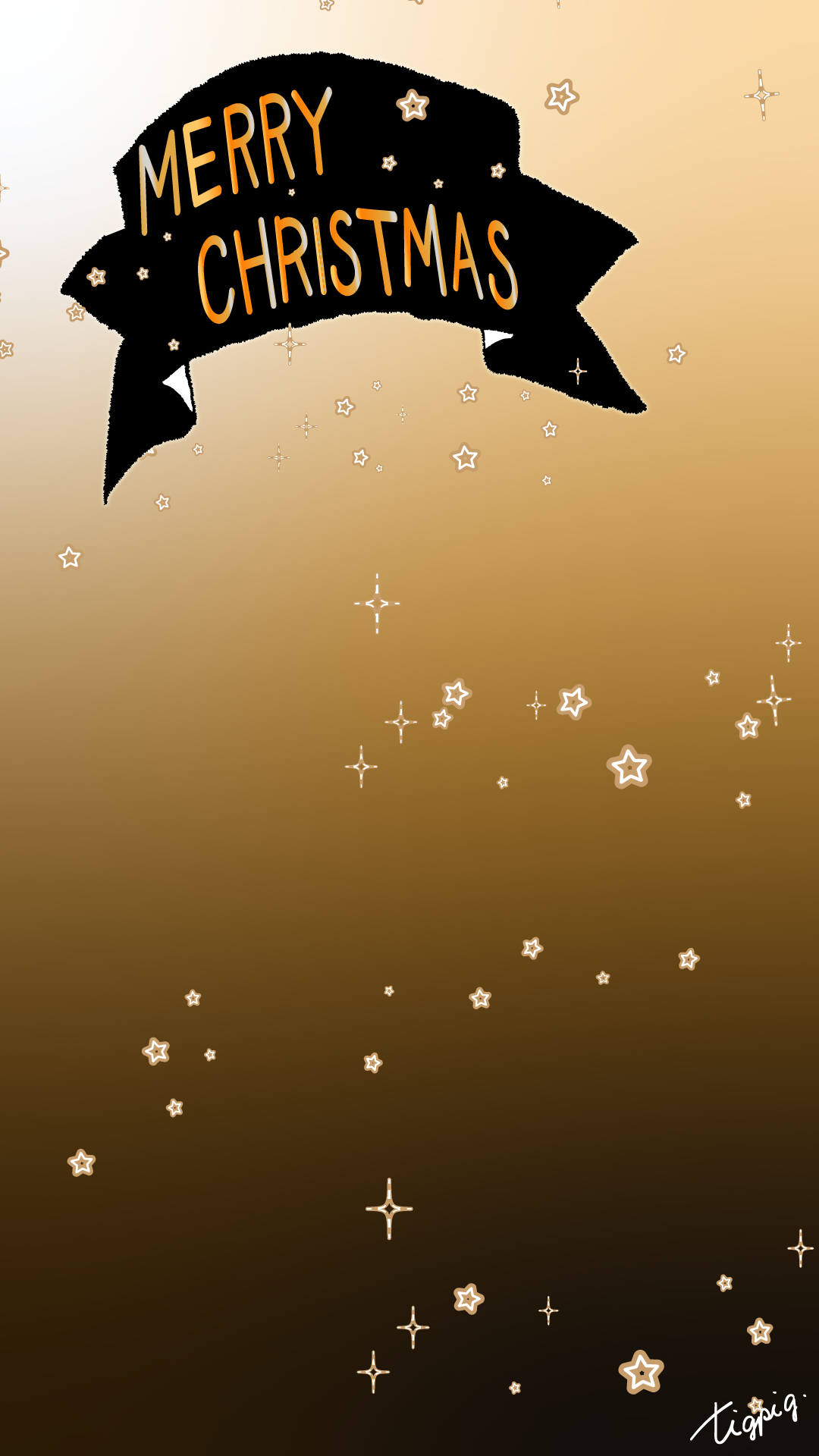 [TikTokサイズ]Merry Chiristmasのレトロモダンな手描き文字と星とリボンのあしらいのバナー素材 1080×1920pix (黒Ver.)