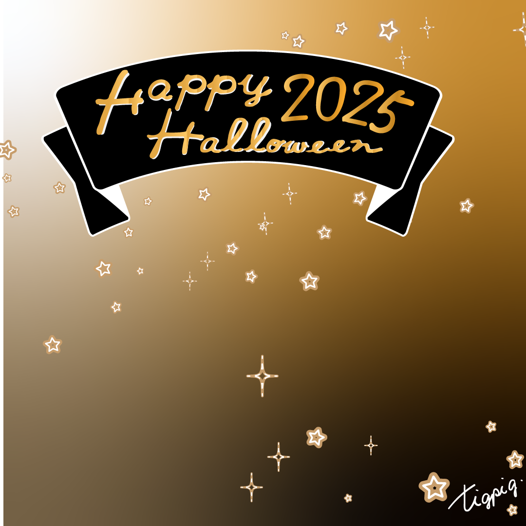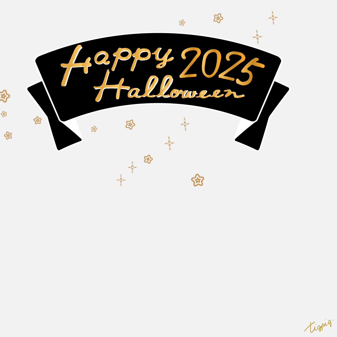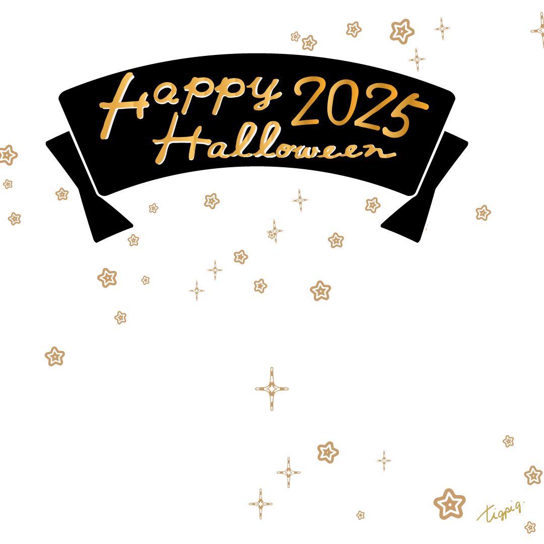 [Instagramサイズ]Happy Hallowleenのレトロな手描き文字と黒のリボンのあしらいのバナー素材1080×1080pix(no.6)