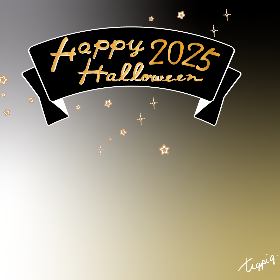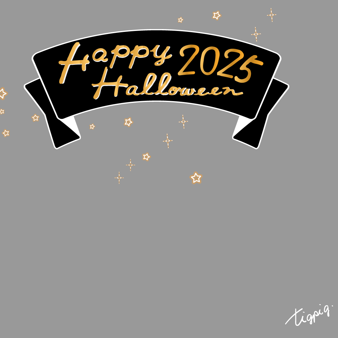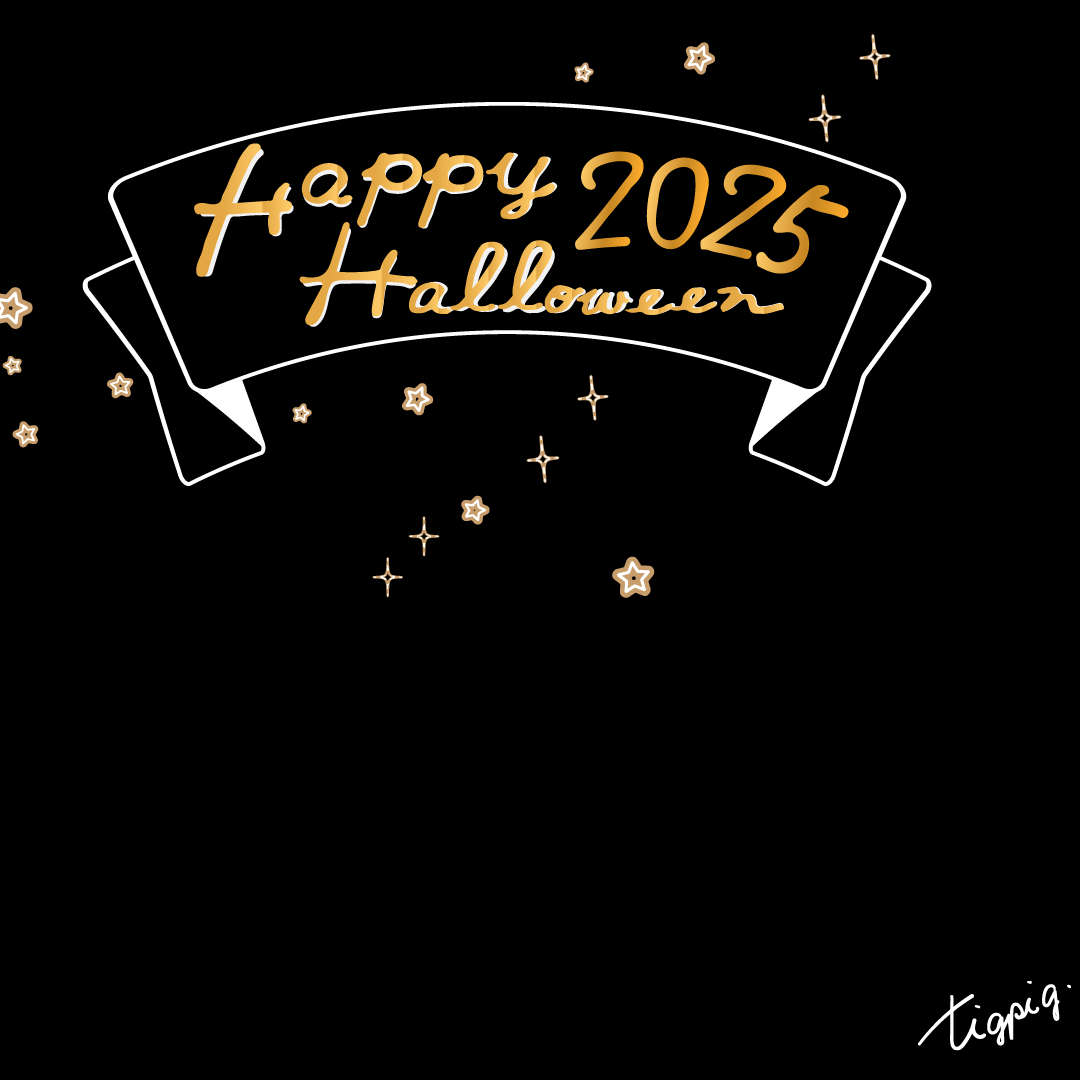 [Instagramサイズ]Happy Hallowleenのレトロな手描き文字と黒のリボンのあしらいのバナー素材1080×1080pix(no.5)