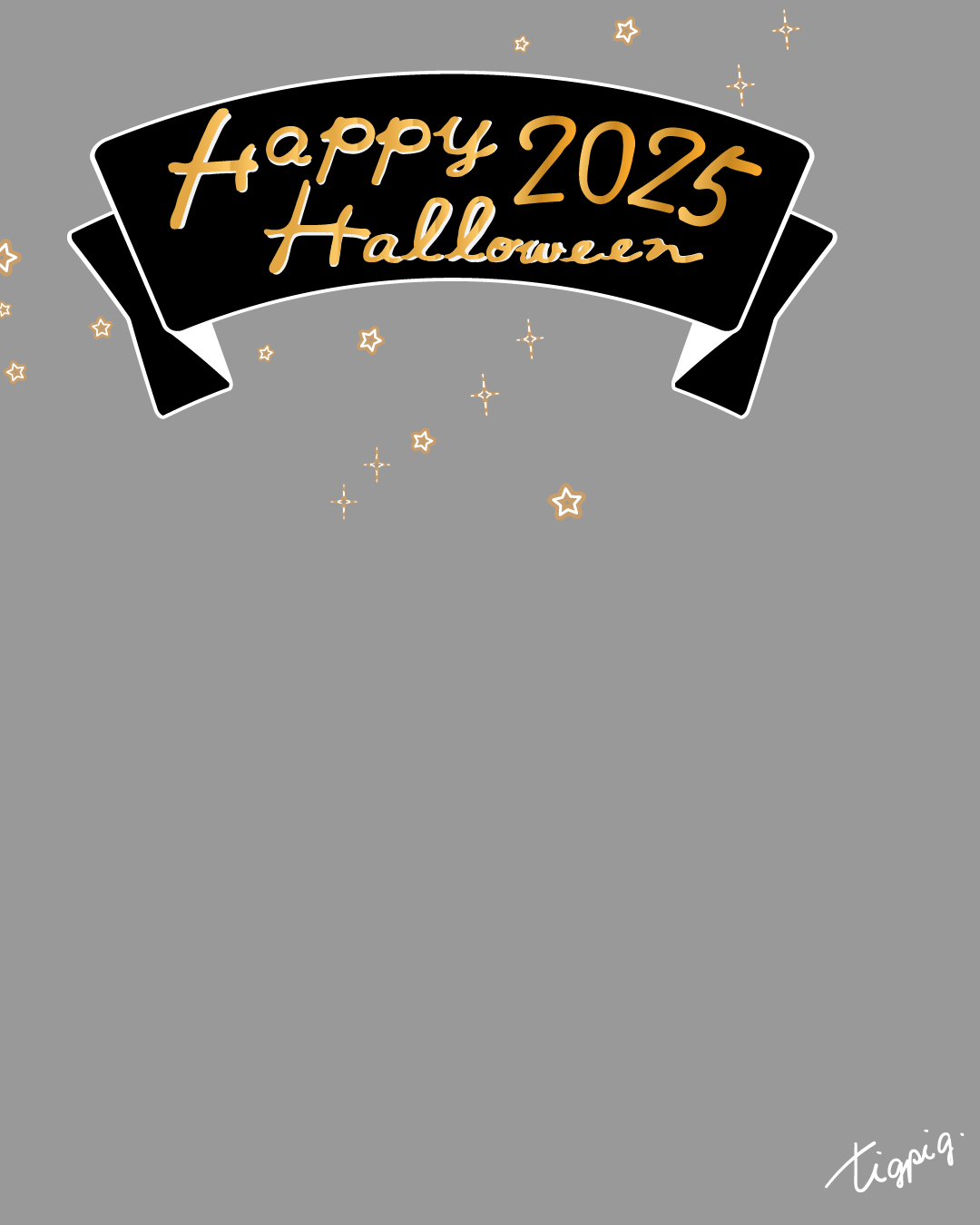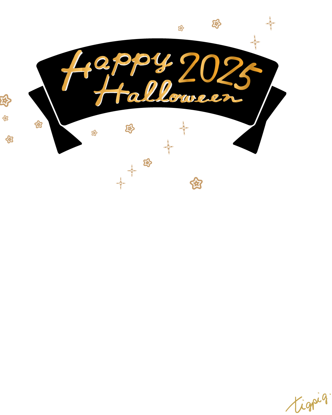 [Instagramサイズ]Happy Hallowleenのレトロな手描き文字と黒のリボンのあしらいのバナー素材1080×1350pix(No.2)