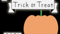 [ハロウィン]Halloween Happy Trick or Treat 2023のレトロな手描き文字とかぼちゃのイラストとリボンのあしらいのバナー素材600×600pix(デザイン.21)