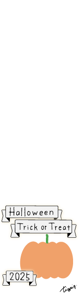 [縦長バナー]Halloween Happy Trick or Treat 2025のレトロな手描き文字とかぼちゃのイラストとリボンのあしらいのバナー素材160×600pix(デザイン.2)