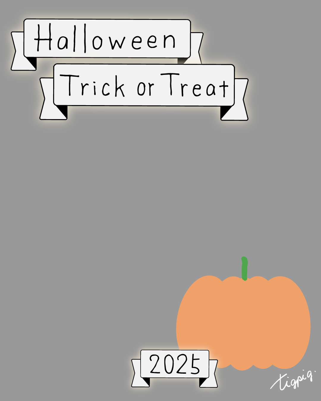 Halloween Happy Trick or Treat 2025のレトロな手描き文字とかぼちゃのイラストとリボンのあしらいのバナー素材です。Instagram・Facebook・バナーデザインの背景デザインに使える1080×1080pixサイズのバナー素材です。HP制作、オンラインショップなどのwebデザインにもご利用いただけます。(商用、印刷、掲示、配布可。販売不可。) イベントやセールのタイポグラフィーやその他イラスト、商品画像などと組み合わせてご利用ください。