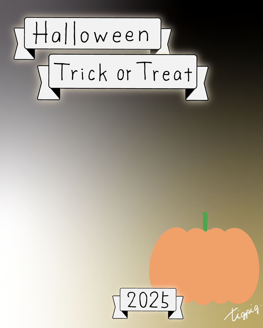 Halloween Happy Trick or Treat 2025のレトロな手描き文字とかぼちゃのイラストとリボンのあしらいのバナー素材です。Instagram・Facebook・バナーデザインの背景デザインに使える1080×1080pixサイズのバナー素材です。HP制作、オンラインショップなどのwebデザインにもご利用いただけます。(商用、印刷、掲示、配布可。販売不可。) イベントやセールのタイポグラフィーやその他イラスト、商品画像などと組み合わせてご利用ください。