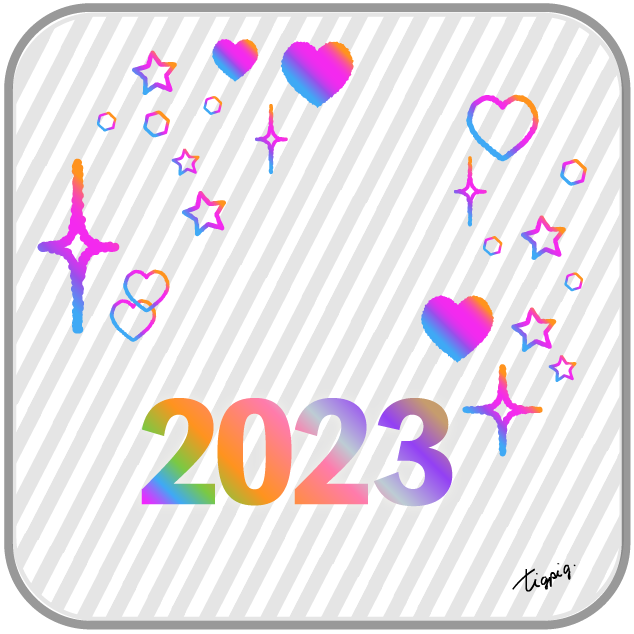 虹色のグラデーションのハートと星とキラキラ[2023]のバナー素材600×600pix(デザイン.20)