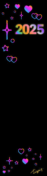 [縦長バナー]虹色のグラデーションのハートと星とキラキラ[2025]のバナー素材160×600pix(デザイン.3)