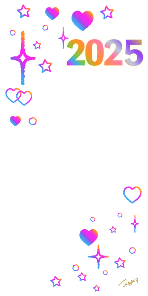 [縦長1:2]虹色のグラデーションのハートと星とキラキラ[2025]のバナー素材300×600pix(デザイン.1-透過)