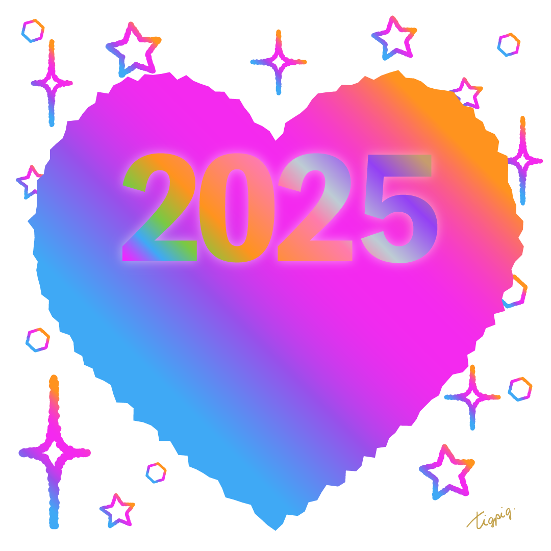 虹色のグラデーションのハートと星とキラキラ[2025]のバナー素材 1080×1080pix(デザイン.4)