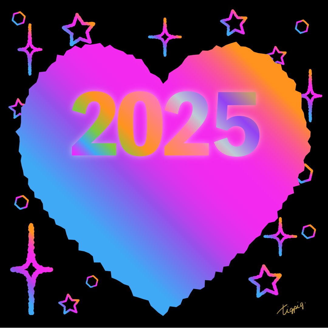 虹色のグラデーションのハートと星とキラキラ[2025]のバナー素材1080×1080pix(デザイン.6)