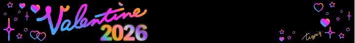 虹色のグラデーションのValentine 2026の手書き文字とキラキラのあしらいのバナー素材 728×90pix(デザイン.03)