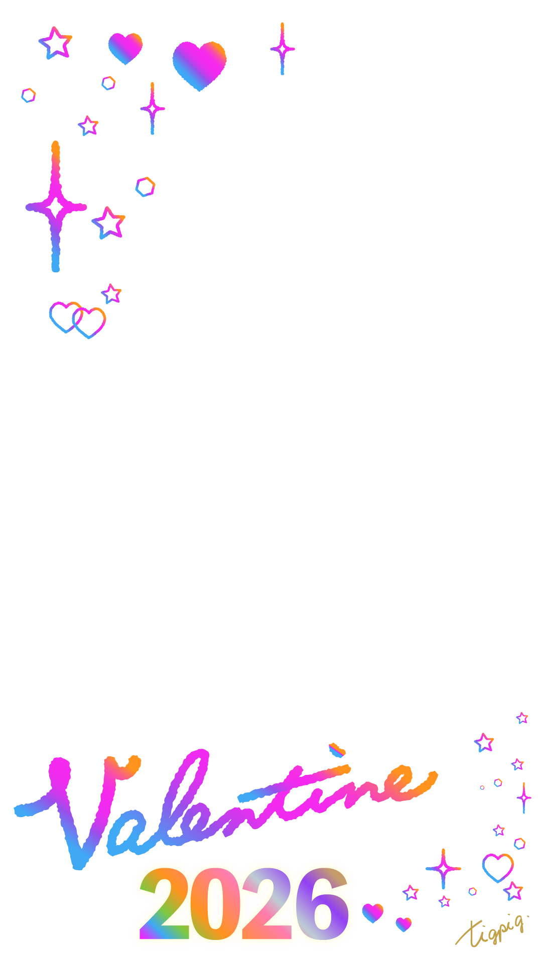 TikTokサイズ]虹色のグラデーションのValentine 2026の手書き文字とキラキラのあしらいのバナー素材1080×1350pix(デザイン.01 透過)