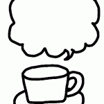 カップと吹出しのポップなイラスト素材(400×600pix)は