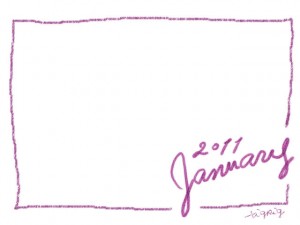 フリー素材:フレーム・飾り枠:640×480pix;大人かわいい手描き文字2011Januauyとクレヨン風のライン(ピンク)の飾り枠のwebデザイン素材