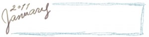 フリー素材:ヘッダー:800pix;大人かわいい手描き文字2011Januauyとブルーのラフな飾り枠のガーリーなwebデザイン素材