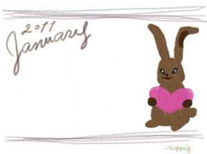 フリー素材:フレーム・飾り枠:640×480pix;大人かわいい手描き文字2011Januauyとうさぎのイラストのwebデザイン素材