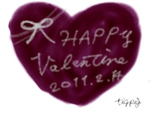 バレンタインの大人かわいい手書き文字Valentine2011214と赤紫色のハートのイラスト