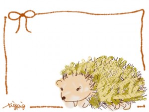 ネットショップ、webデザインのフレーム素材:大人かわいいリボンとガーリーなハリネズミのイラストの飾り枠