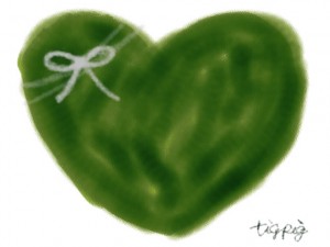 ネットショップ、バナー広告、webデザインのフリー素材:大人可愛いくすんだ緑色のハートとりぼんのイラスト