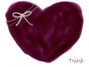 大人可愛い赤茶色のハートとりぼんのイラストのイラスト