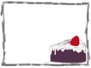 大人可愛いくすんだ紫色の苺ショートケーキと鉛筆風飾り枠のイラストのwebデザイン素材