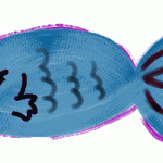 ガーリーな水色の魚のイラストは、